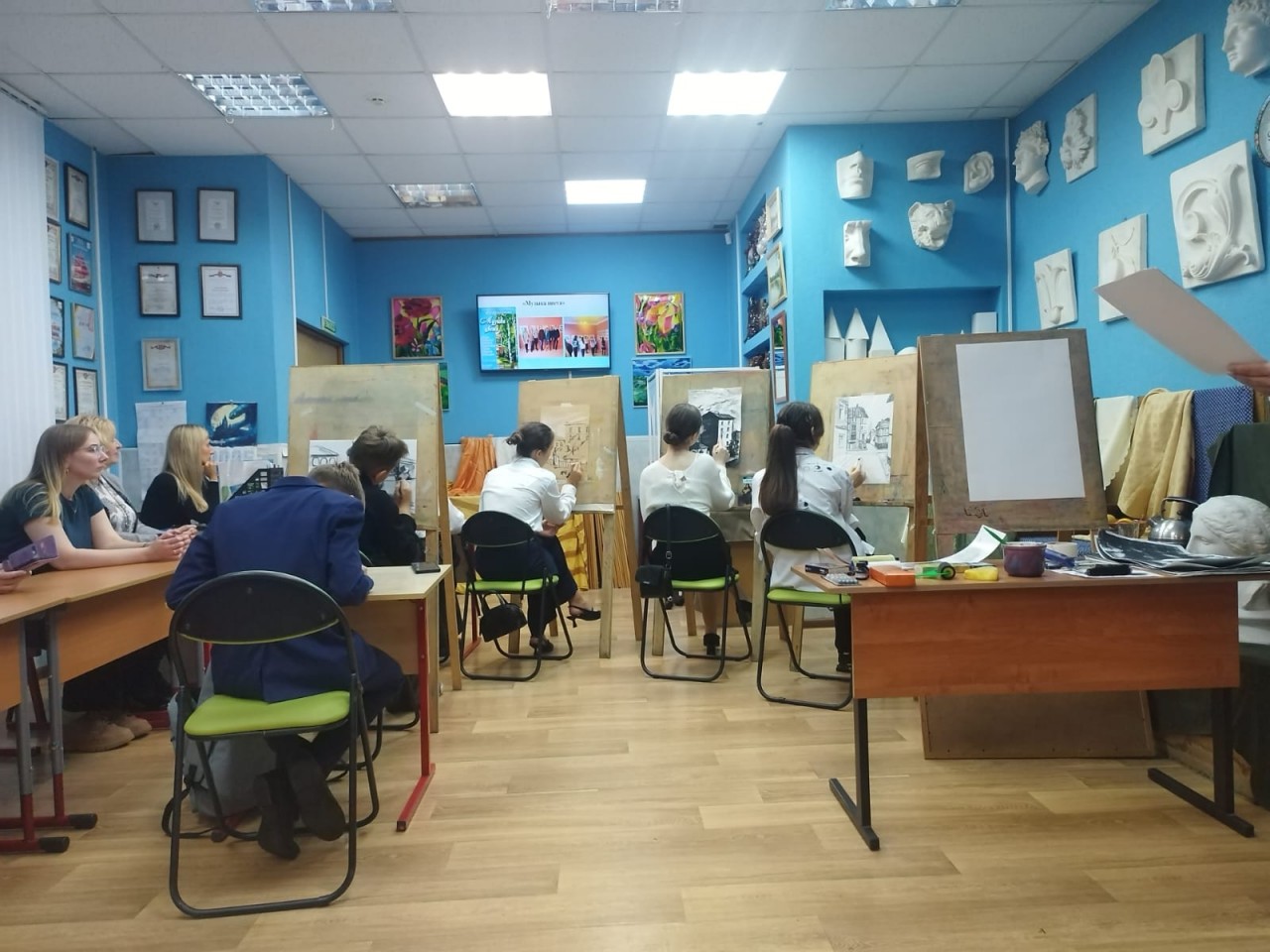 Преподаватели художественного отделения посетили областной открытый урок в МБУДО ДШИ им. Г. Г. Галынина "Приемы и материалы работы над графической композицией"