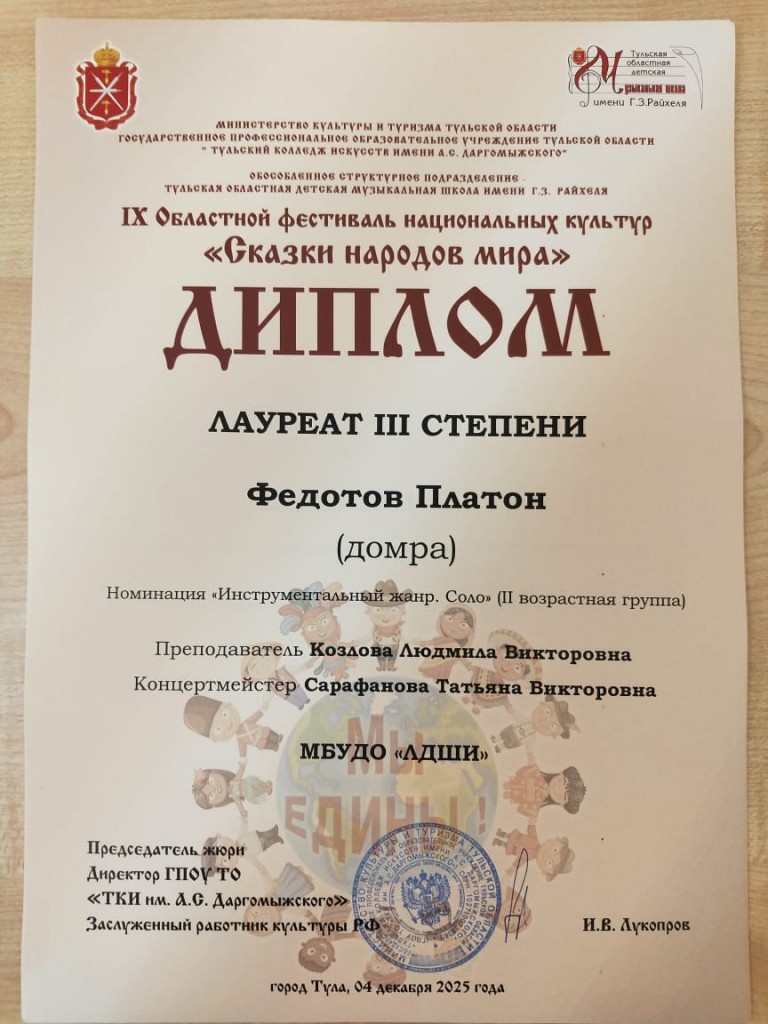 Федотов Платон- ЛАУРЕАТ III СТЕПЕНИ