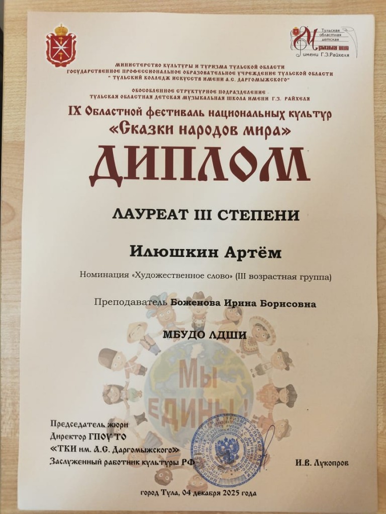 Илюшкин Артём- ЛАУРЕАТ III СТЕПЕНИ