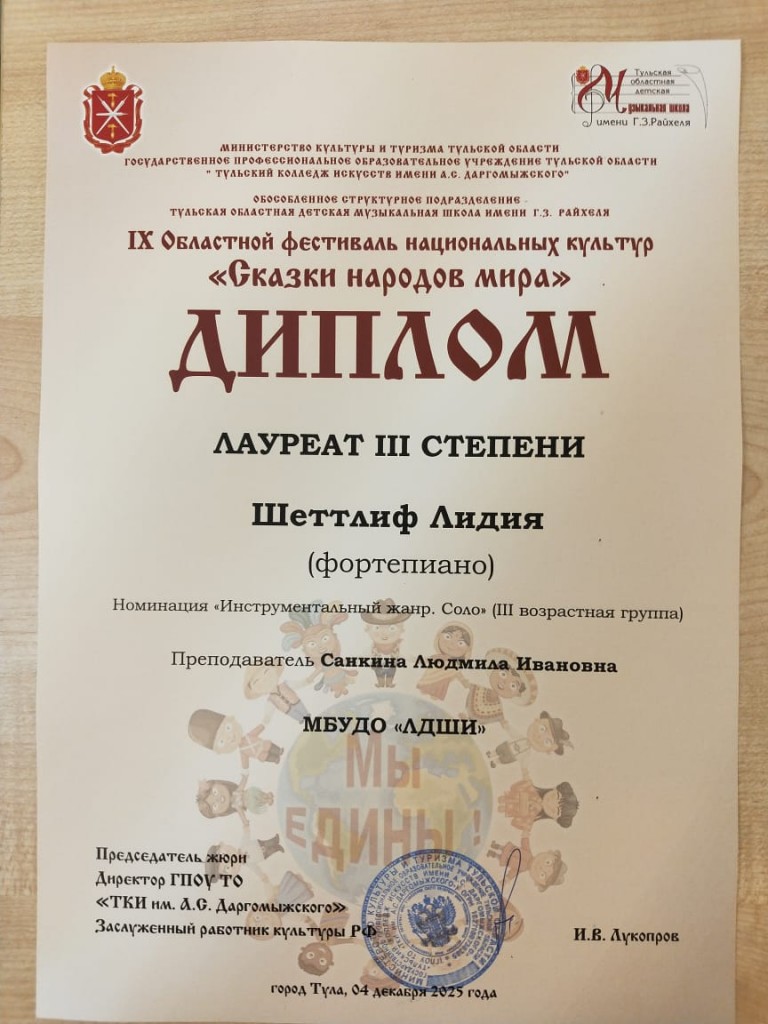 Шеттлиф Лидия - ЛАУРЕАТ III СТЕПЕНИ