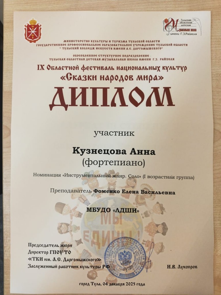 (преп. по классу фортепиано Фоменко Елена Васильевна)