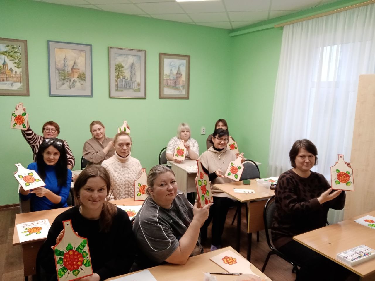 29 ноября 2025 г. преподаватель художественного отделения нашей школы Муратова Анна Владимировна провела мастер-класс "Мама может все!" для мам учащихся группы раннего эстетического развития по росписи кухонной досочки, посвященный этому замечательному и трогательному празднику.