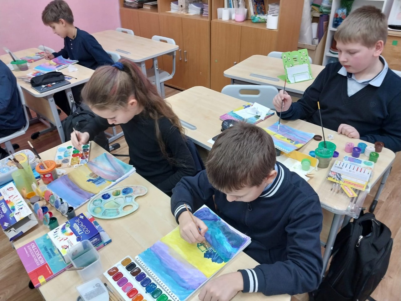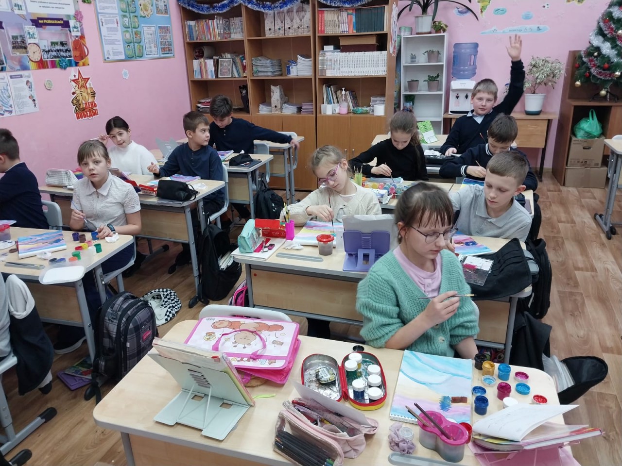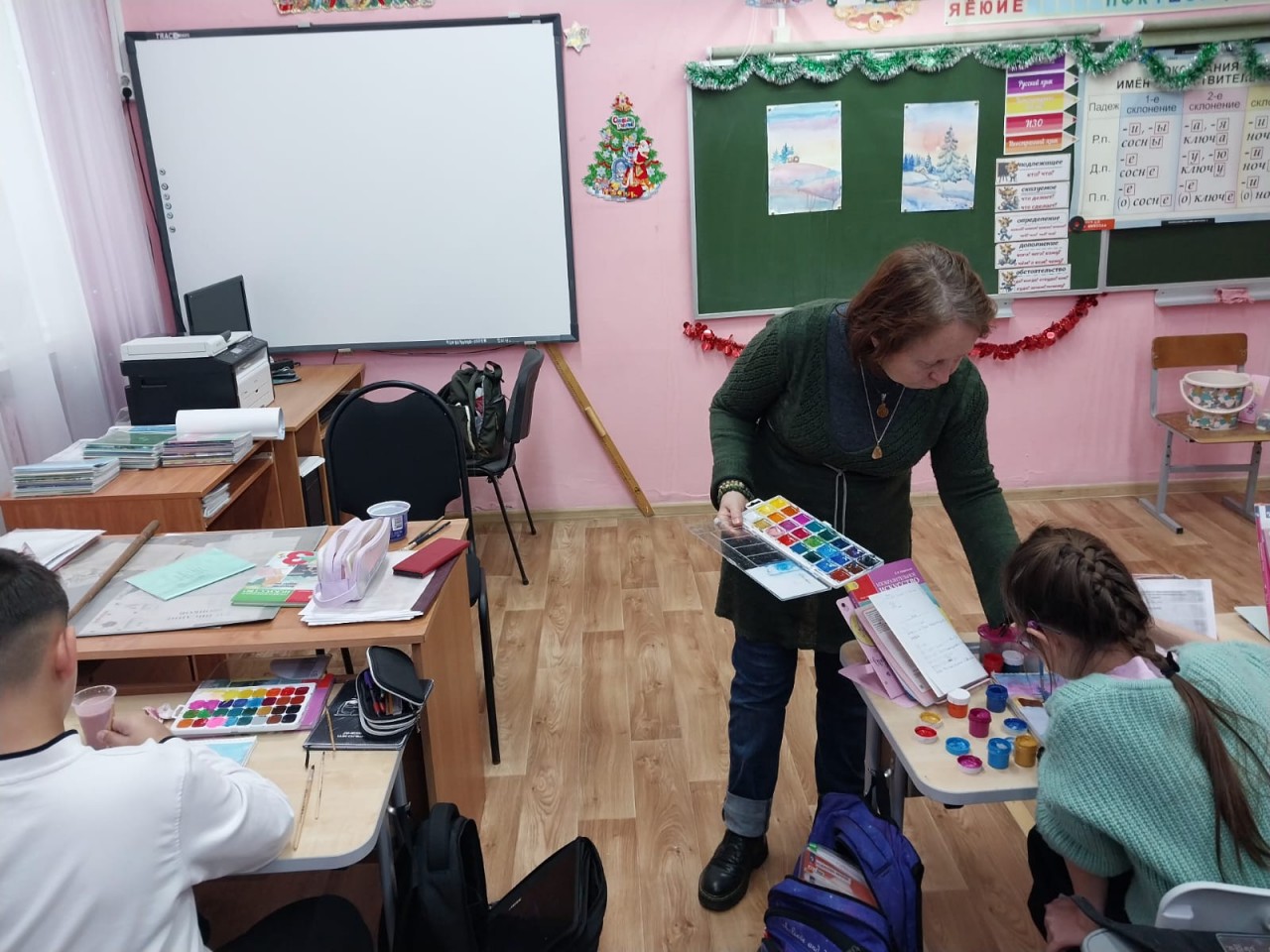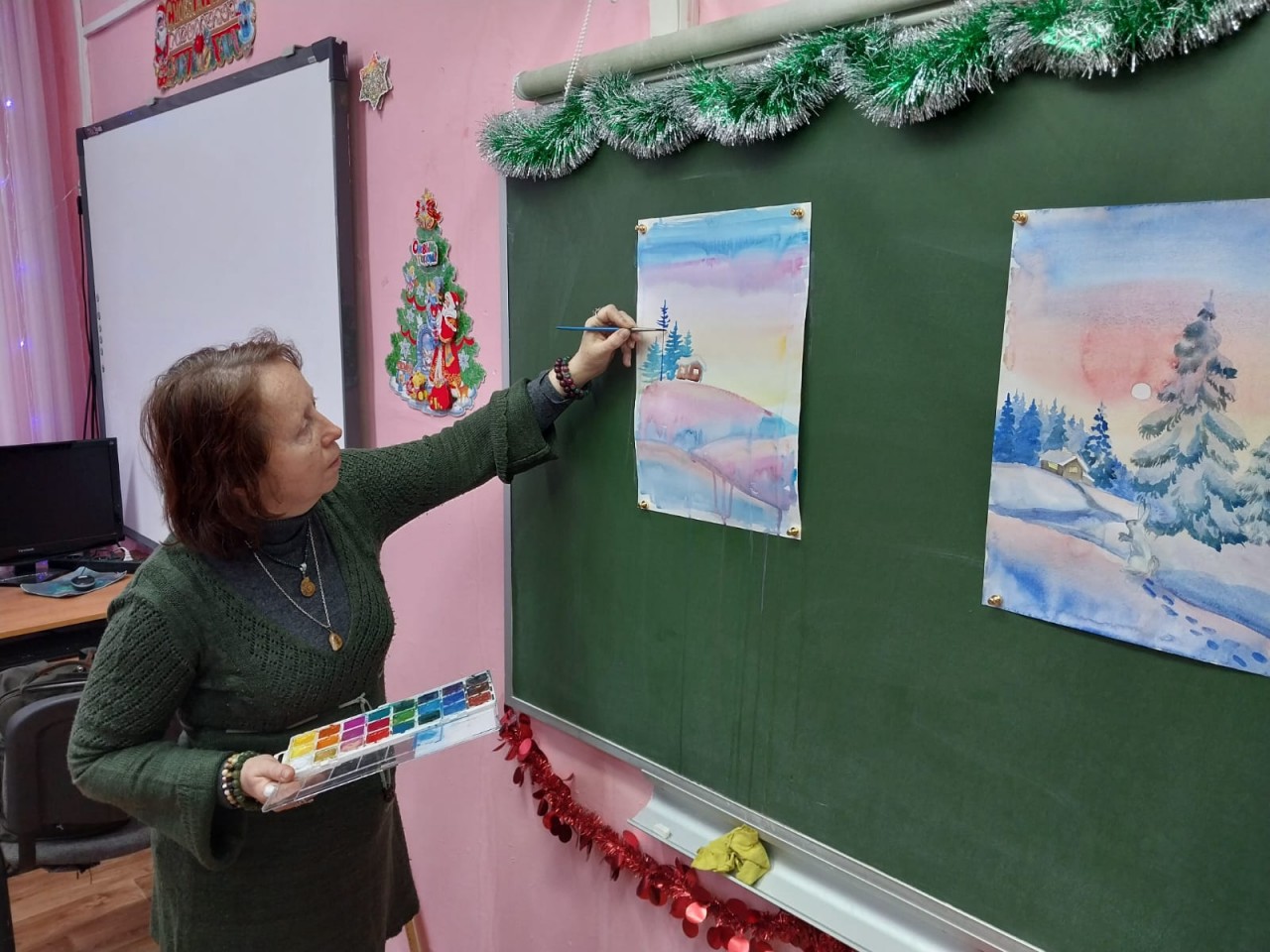 Преподаватель художественного отделения Синицына Юлия Петровна провела мастер-класс "Зимний лес" для учащихся 4 класса МБОУ "ЦО 46" п. Ленинский.