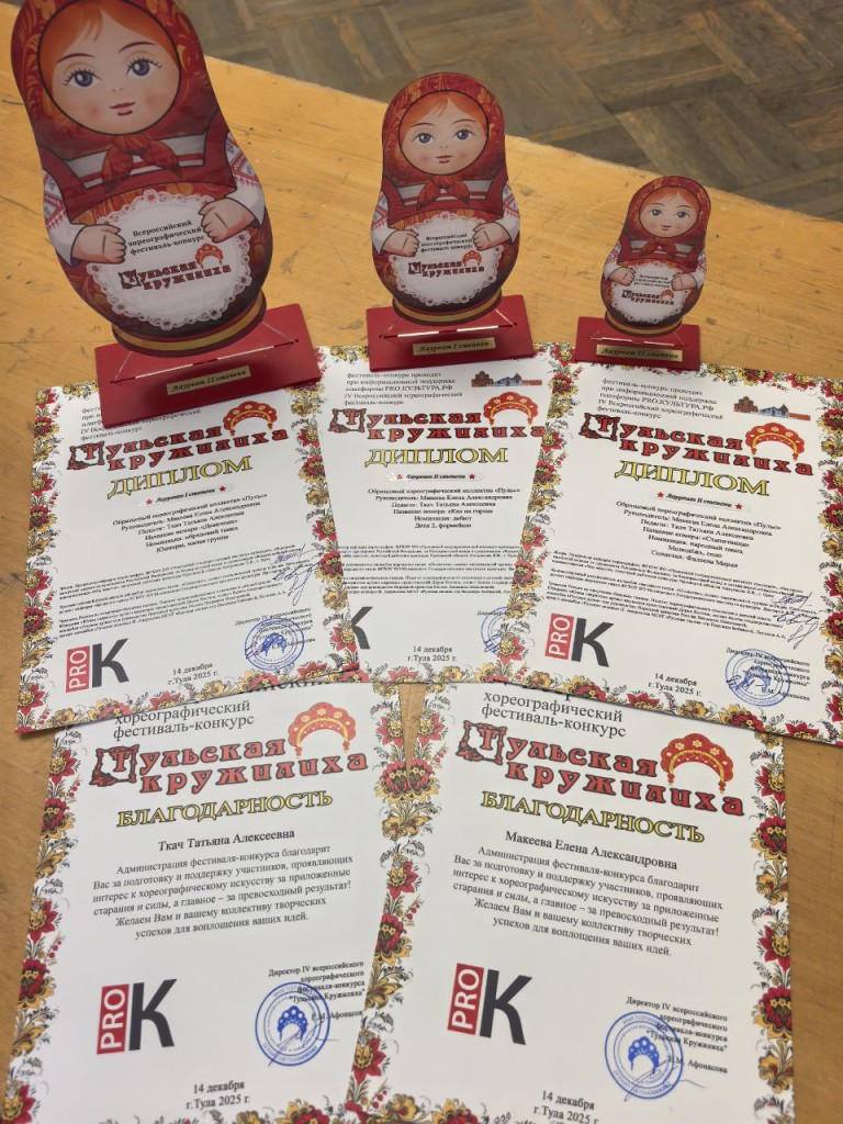 Поздравляем Образцовый хореографический коллектив "Пульс" (руководитель-Макеева Е. А. , преподаватель- Ткач Т.А.) с достойными наградами: