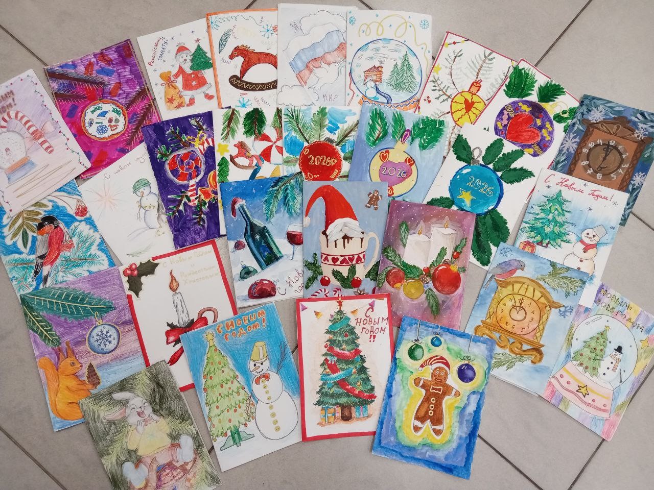Учащиеся художественного отделения подготовили поздравительные открытки с пожеланиями к Новому году для бойцов СВО