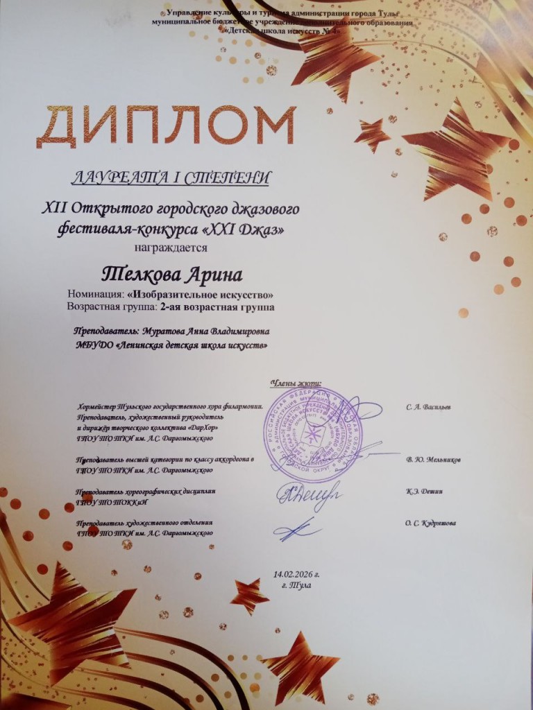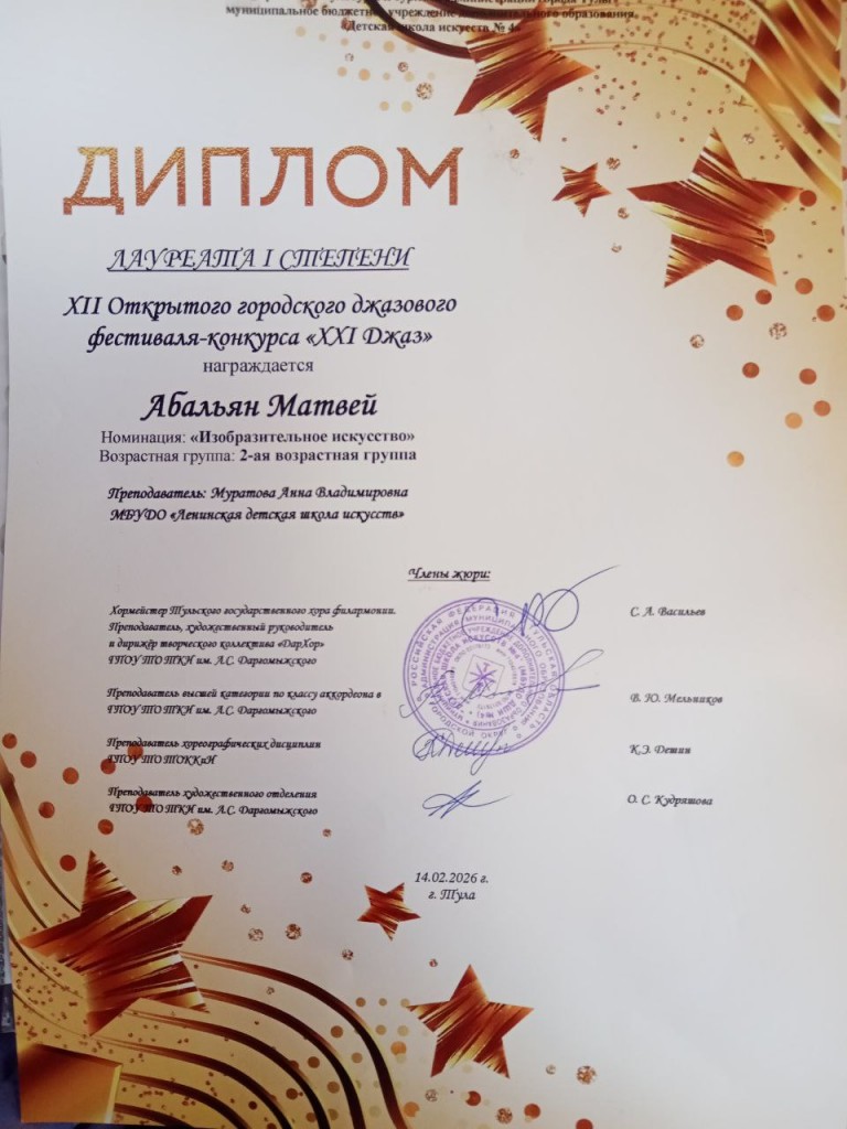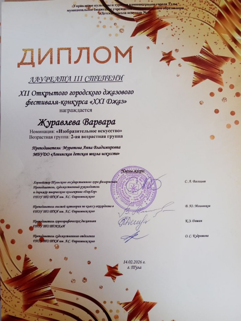 Учащиеся художественного отделения школы преподаватель Муратова Анна Владимировна, приняли участие в ХII Открытом городском джазовом фестивале- конкурсе “XXI Джаз”:
