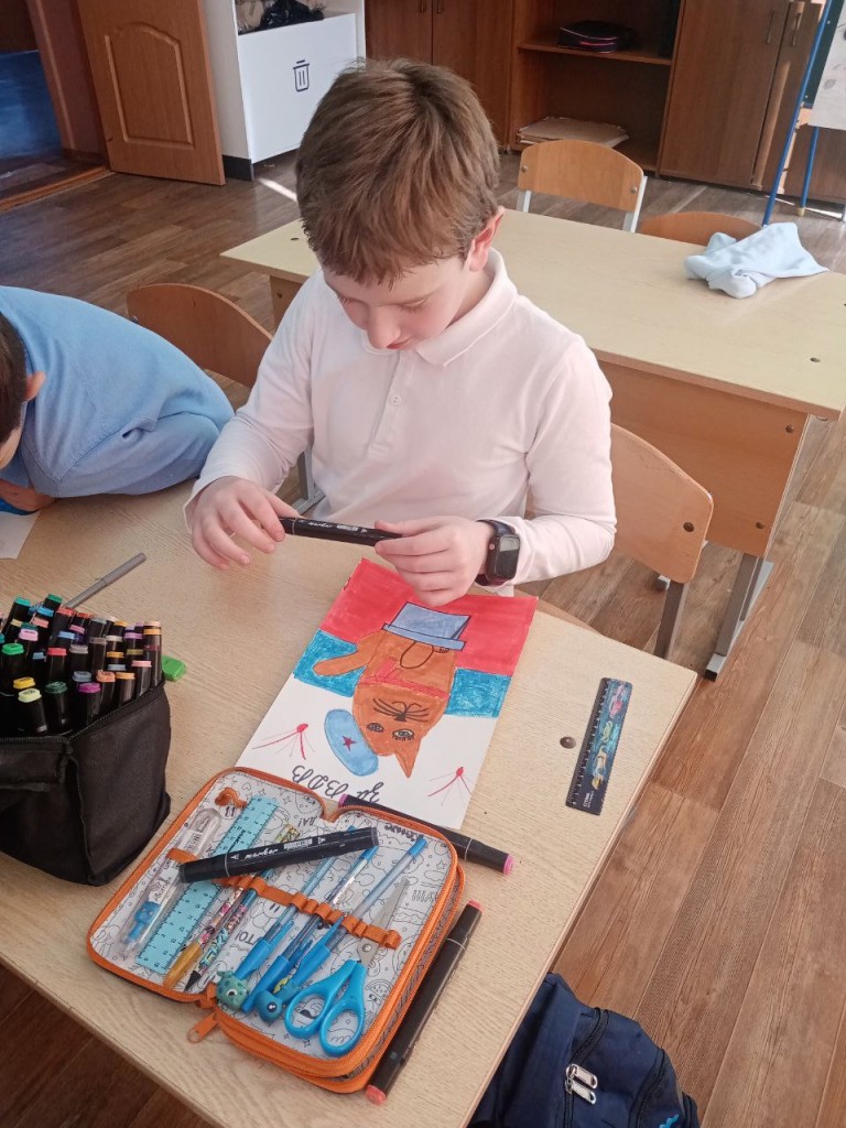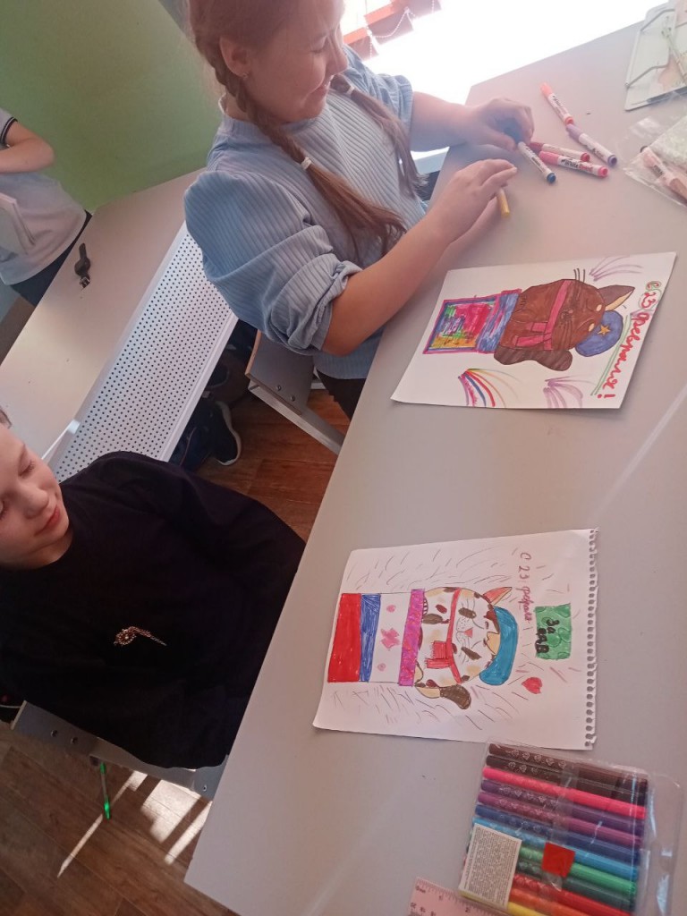 18 февраля в МБОУ ЦО N46 во 2 классе прошёл мастер -класс "Тепло наших сердец" ко Дню защитника Отечества, который провела преподаватель художественного отделения Муратова Анна Владимировна.