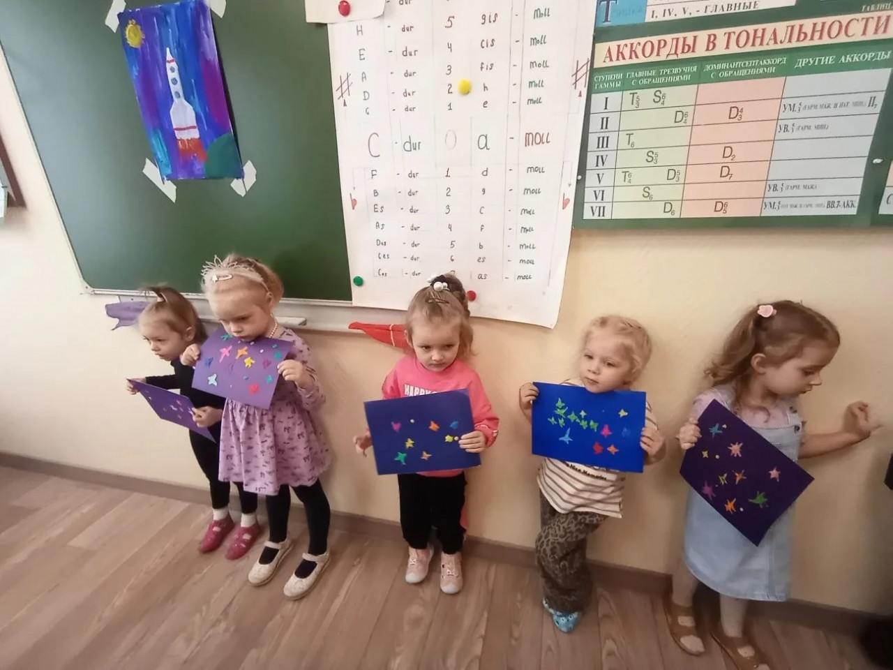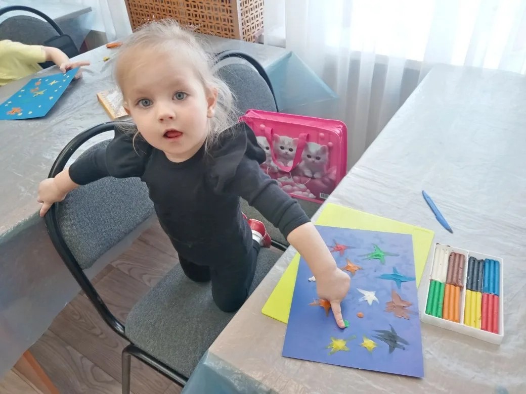 Детки из группы раннего эстетического развития под руководством преподавателя Муратовой Анны Владимировны рисовали рисунки, посвящённые дню космонавтики "Навстречу к звездам" .