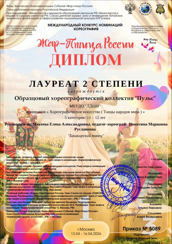 Международном фестивале-конкурсе «Жар-Птица России» г.Москва:
