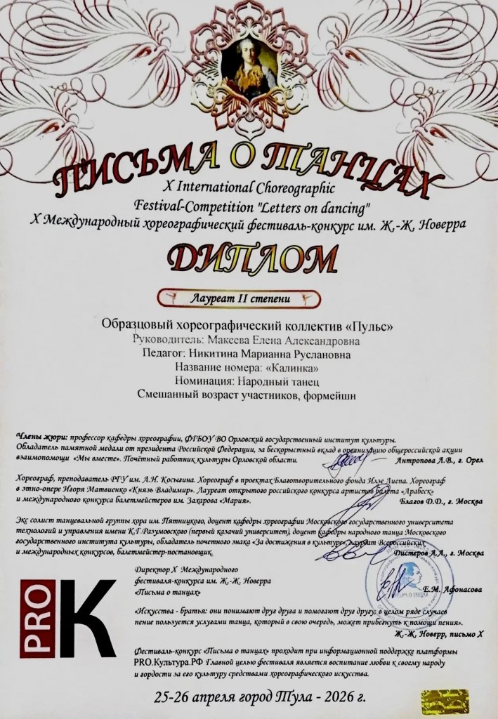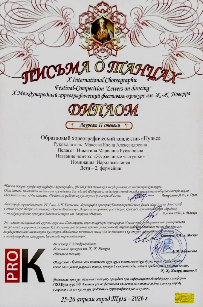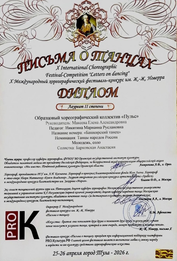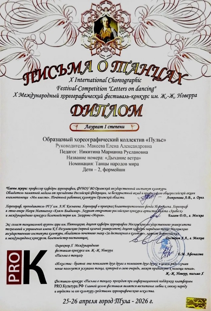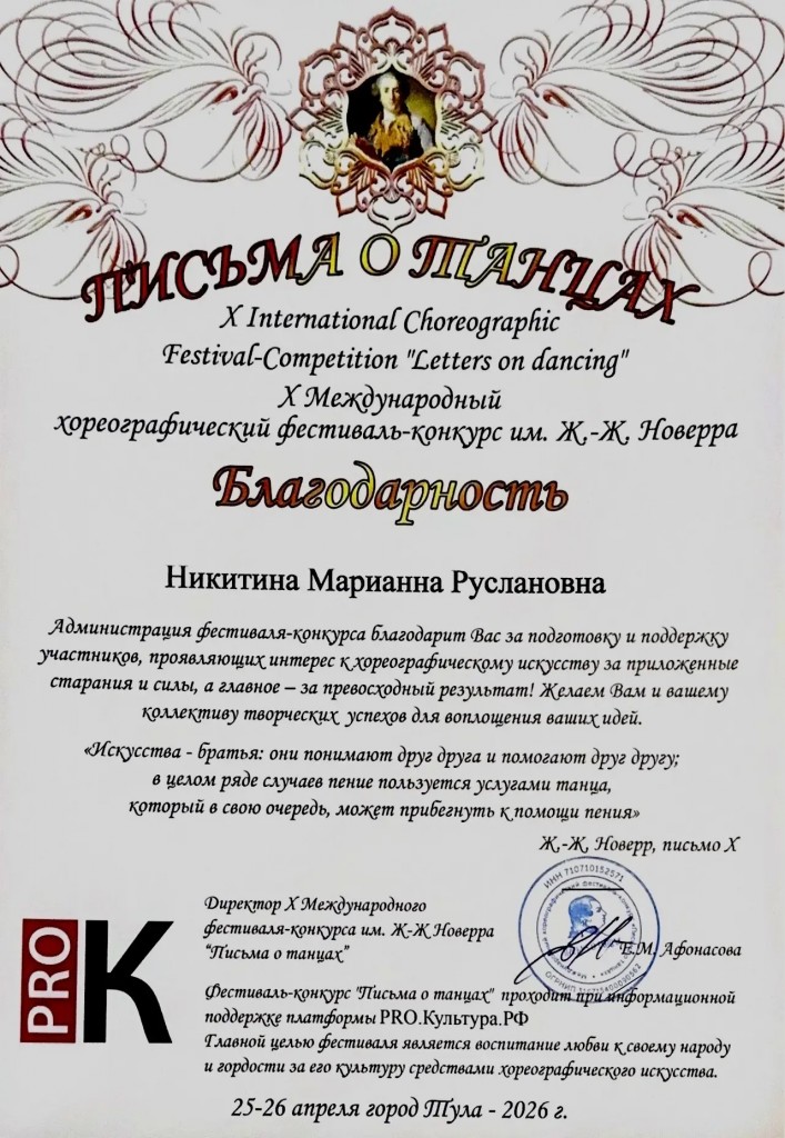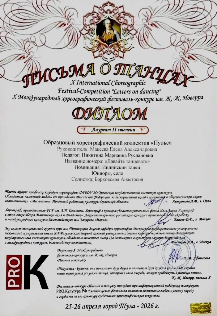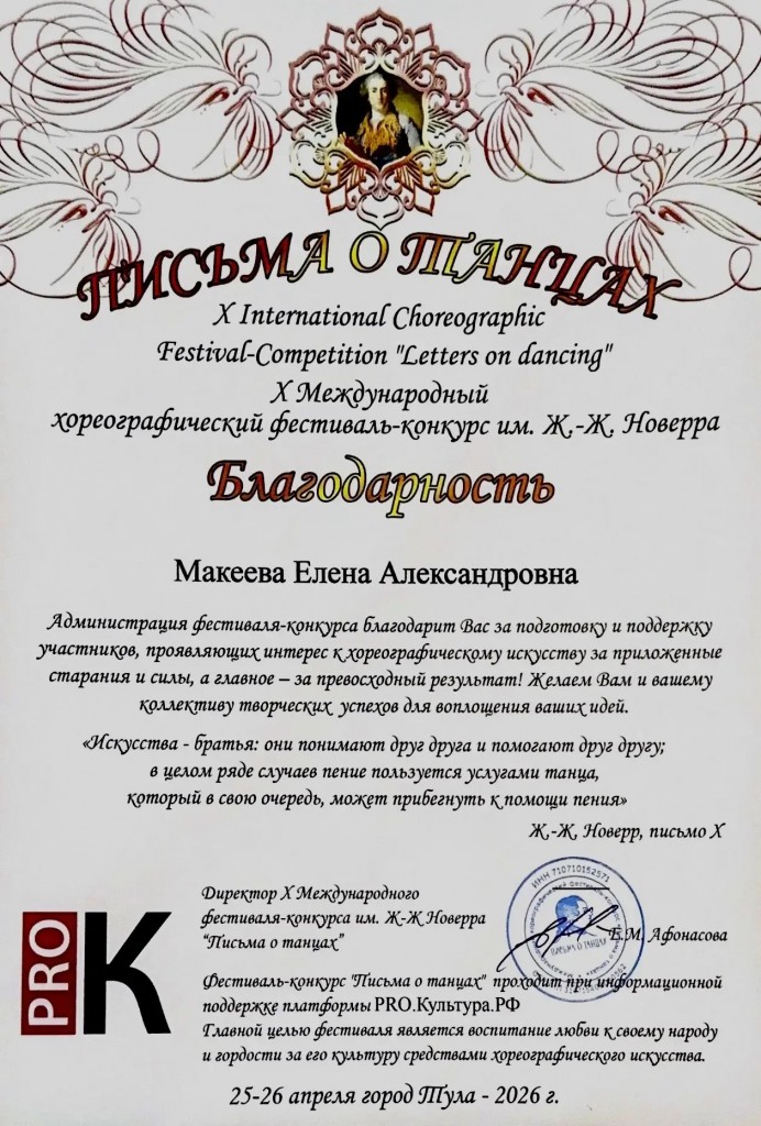 фестивале-конкурсе им.Ж-Ж.Новерра «Письма о танцах» :