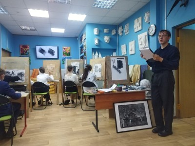 Преподаватели художественного отделения посетили областной открытый урок в МБУДО ДШИ им. Г. Г. Галынина "Приемы и материалы работы над графической композицией"